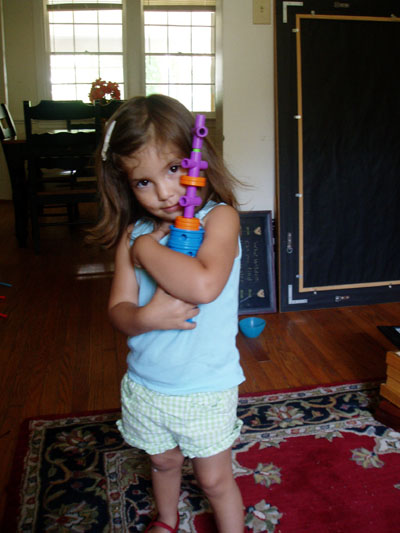 Lucy (who, btw, dressed herself, obviously) made this while the boys laid out the carefully hatched plan…
