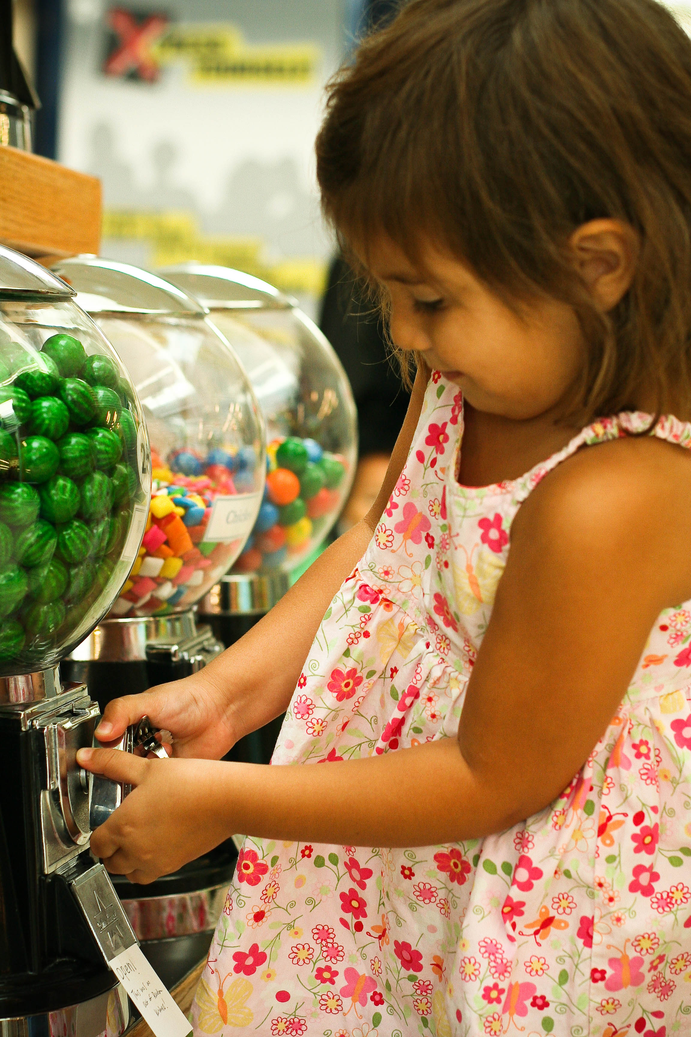 I couldn’t think of a better idea for a random act of kindness from one kid to another. How many times do we say no to that stuff? It was perfect. Off we were to get a roll of quarters. The kids knew it was going to be a good mission when the bank teller put lollipops in with our quarters. It seemed appropriate that the candy mission was starting with some.