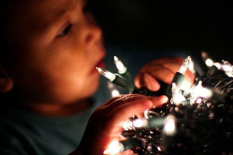 Then she discovered the wonder of lights, as I discovered that every strand had only half the lights work.