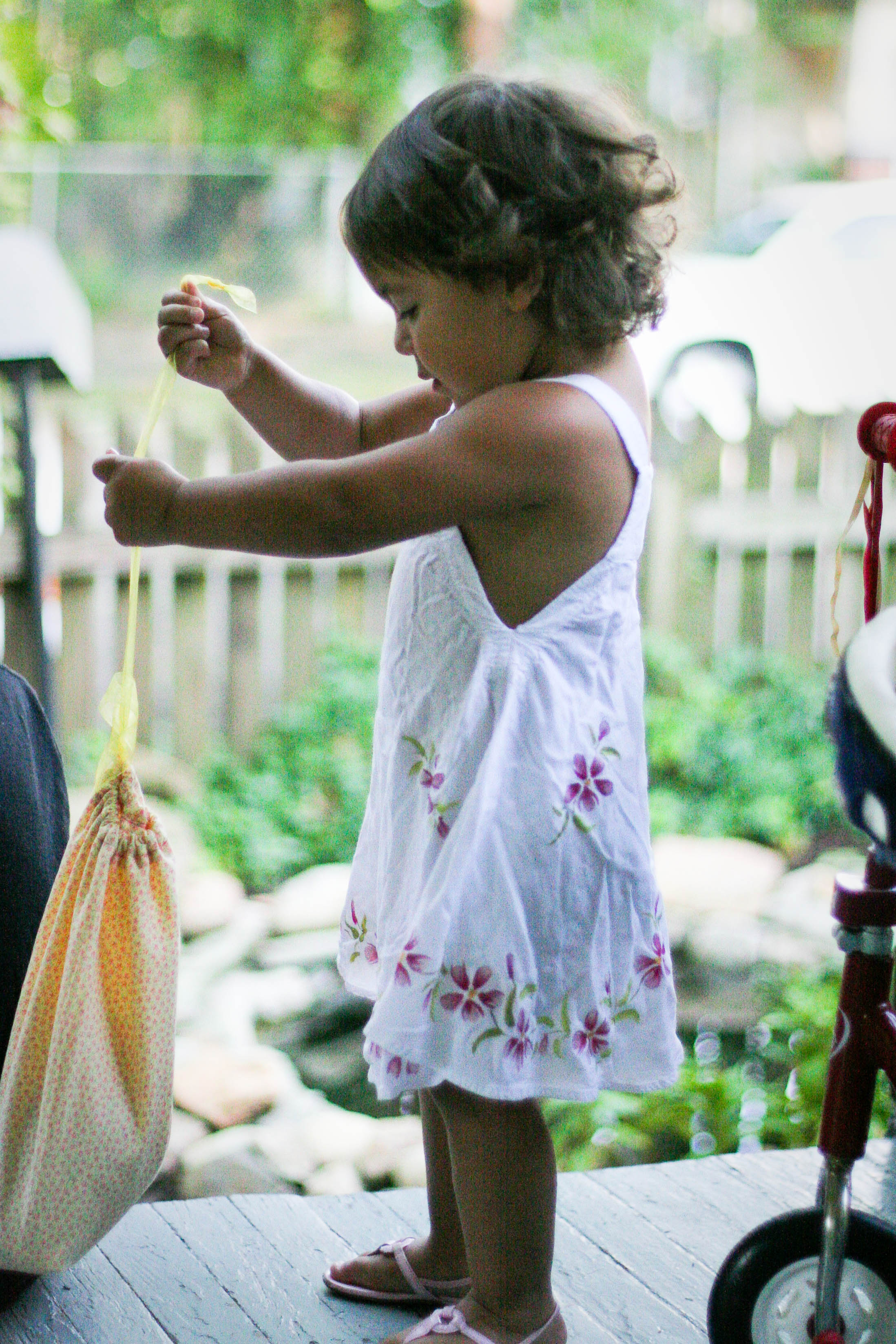 Hello, car bags…I bought some sheets that I was going to turn into pillows and curtains, they came in an adorable little pouch. After Lucy trying to hustle me for the 57,000th time to take even more junk into the car, I gave her the bag and told her she could take whatever she wanted as long as it fit in the bag. Josiah was close by and asked if he could have a bag too. Before I knew it I was making car bags while the fabric for curtains and pillows got tossed aside. I get sidetracked so easily.