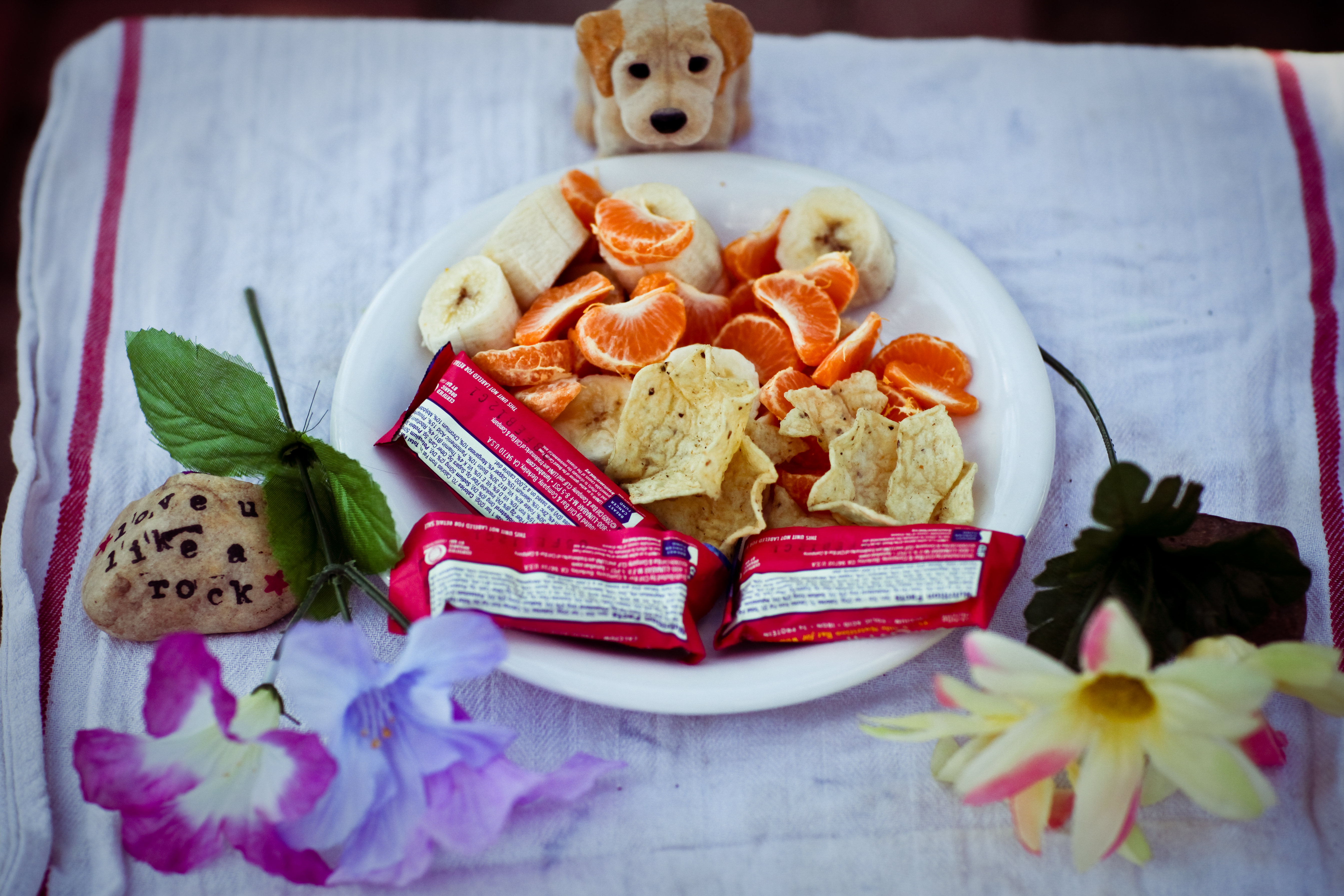 Lucy made us a delicious lunch of clementines, granola bars, tortilla chips and bananas.