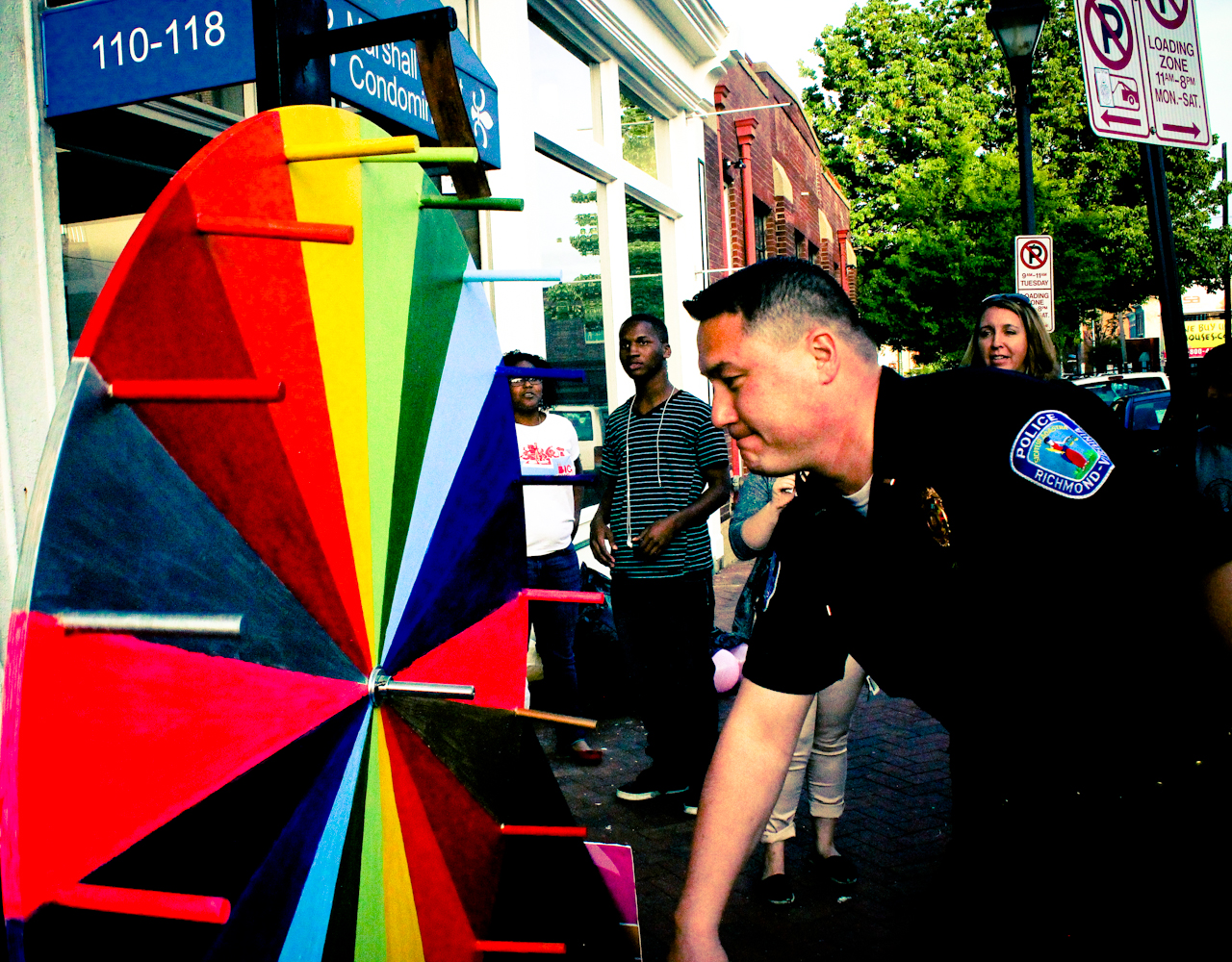It was so, so thrilling!!! We set up the wheel in front of ART180 on RVA’s First Fridays Art Walk and in conjunction with the