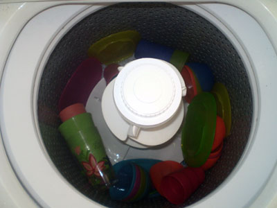 Jorge just laughed as I loaded the washer with plastic Ikea dishes. I just got tired of washing them in the sink in the bathroom. It was time to channel good ole’ mom. Can I just tell you how scary it was that the washer not only worked but completely rocked? soaked em’, washed ’em and spun ’em dry. This might be the best discovery yet for this girl who HATES to wash dishes…