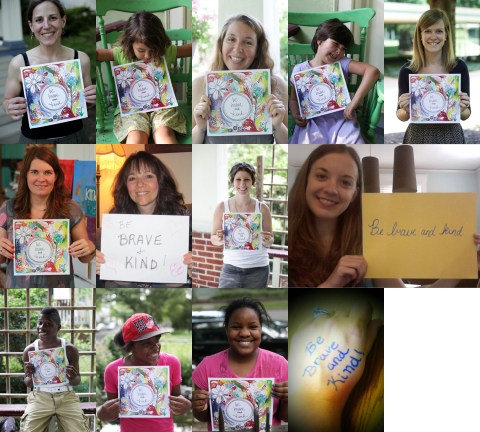 Suzanne and I would love it if you would join us in making rows and rows of pictures…we would love it of you took a picture with the Be Brave and Kind print and send it to patience@kindessgirl.com so we can add it to the next row and watch it grow.