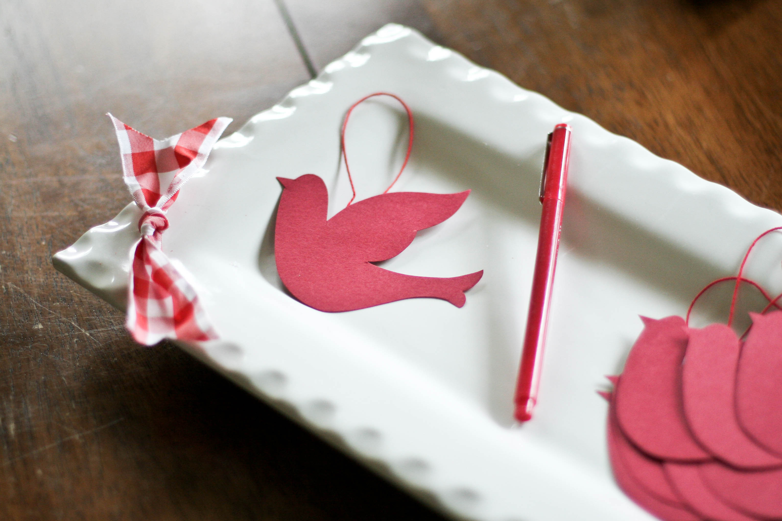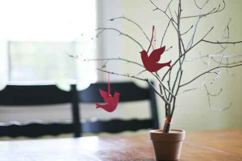A styrafoam block held the tree in place and I covered the top with a round piece of brown paper. The birds were cut out over a dreamy night by myself after all had gone to bed, just me, the dog, some scissors and Netflix. It was pure loveliness. You can find the bird template here, I have no printer since the move so I traced it right from the light of my screen.