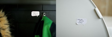 so hung up on YOU! (on the coat rack):: can you give me a lift? (on the toilet seat)