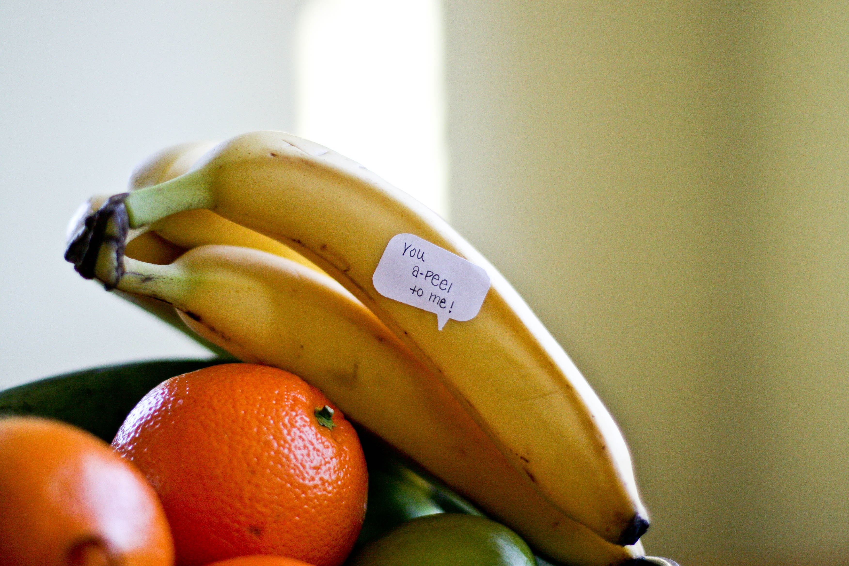 I was way excited to discover this conversation bubble punch at the discount store today. All I could think about the whole ride home was what funny things a banana could say.
