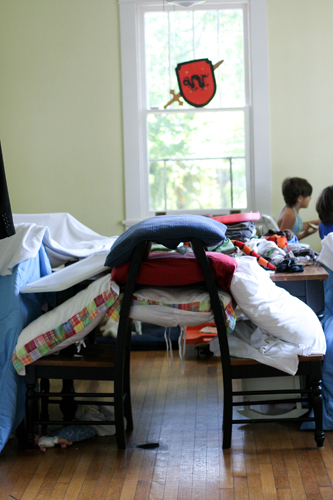The first hour of every Monday, children complain, walk around in circles while they detox, then they moan. If I can survive the first half of the morning, something wonderful happens- the real play starts to unfold. I’m not sure how but last week someone thought fort making would be a good idea, and before I knew it, there was a castle in my dining room. The royal subjects asked for a snack, their ever so humble servant delivered.