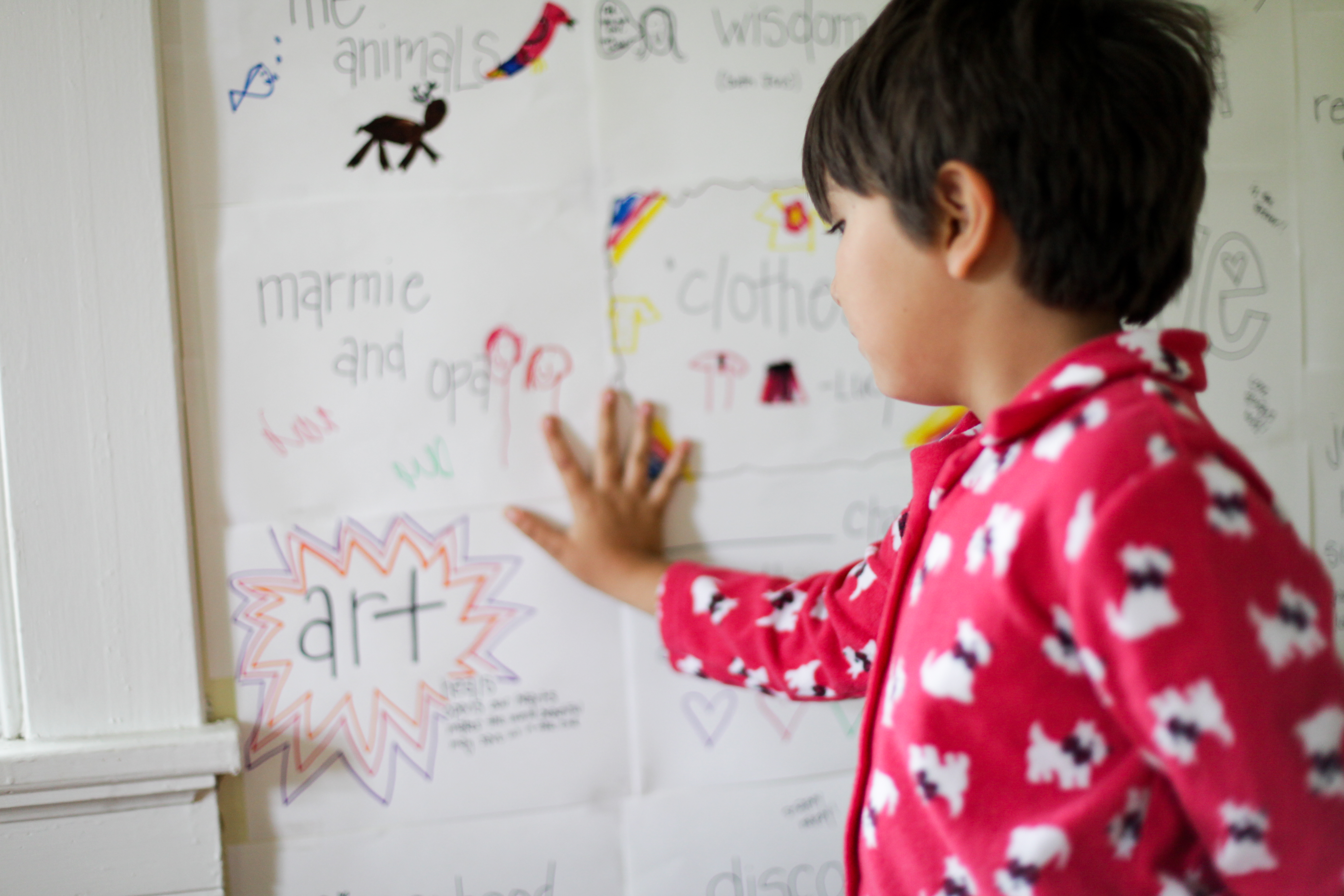 This was just the thing. The girls and I got to work, the papers flowed…as fast as we could finish one, someone else was shouting out another to add. “Did you put Myle’s animal noises on there? Those are super funny, so grateful for that!” …what about the trampoline?! Did someone add that?”