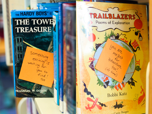 There were all kinds of folks there: artists, mothers, kids, teens, twitter celebrities, babies, foodies, fathers, teachers, friends, strangers…almost 35 total, we hit 17 schools, all in our city of Richmond. I was sort of tortured, surprisingly. I wished I could go with each person to each place, but instead we milled around trying to decide who would take what and wondering if we should take more. Each went their own way and then we (the kids and I) traveled around the city GG’ing and trying to catch up with the others…