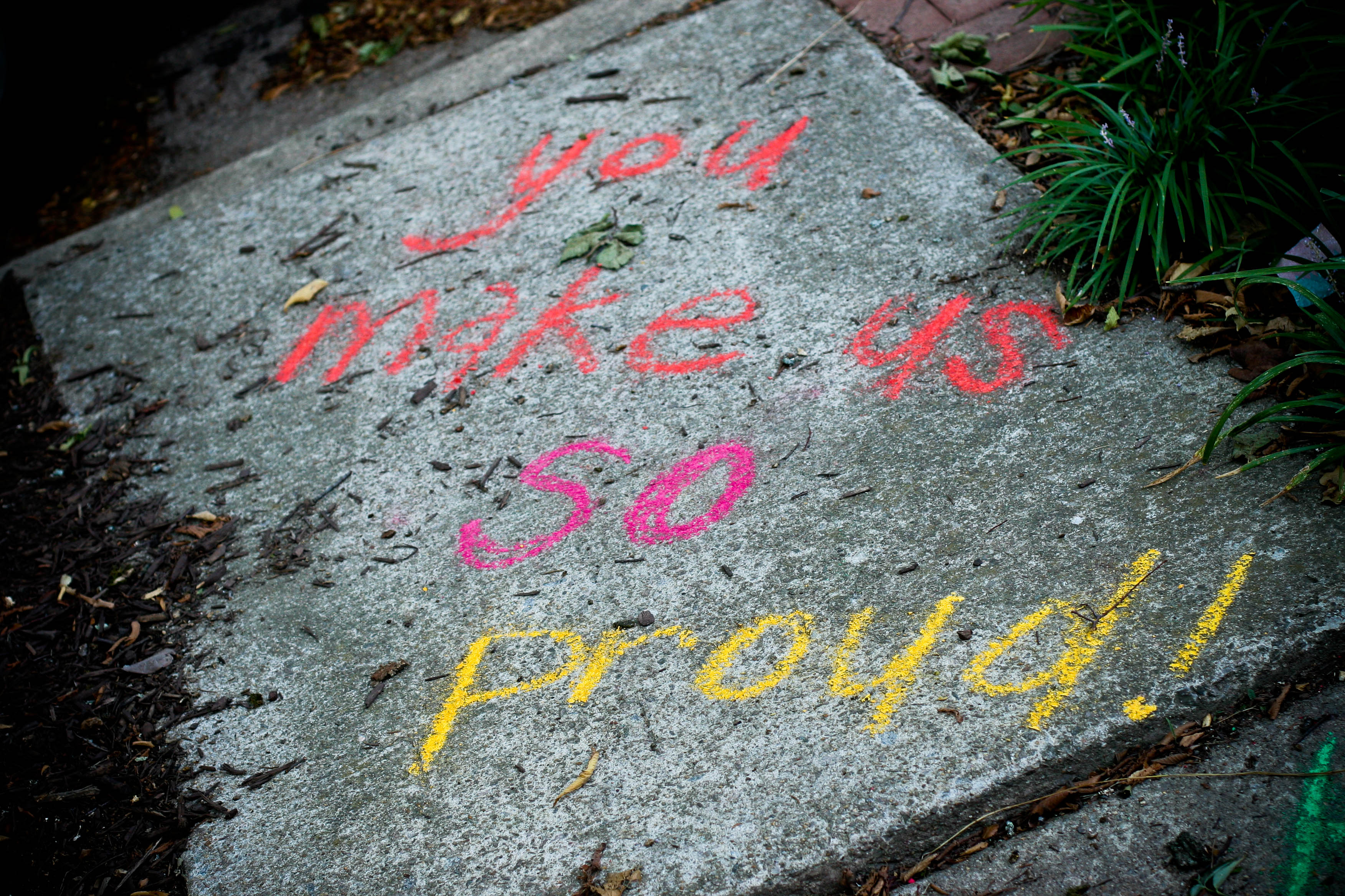 2. You head out with friends, family, kids, dogs, grandmothers, artists, whoever…and write positive messges to kids on the sidewalks in front of the elementary schools in Richmond city for the first day of school.