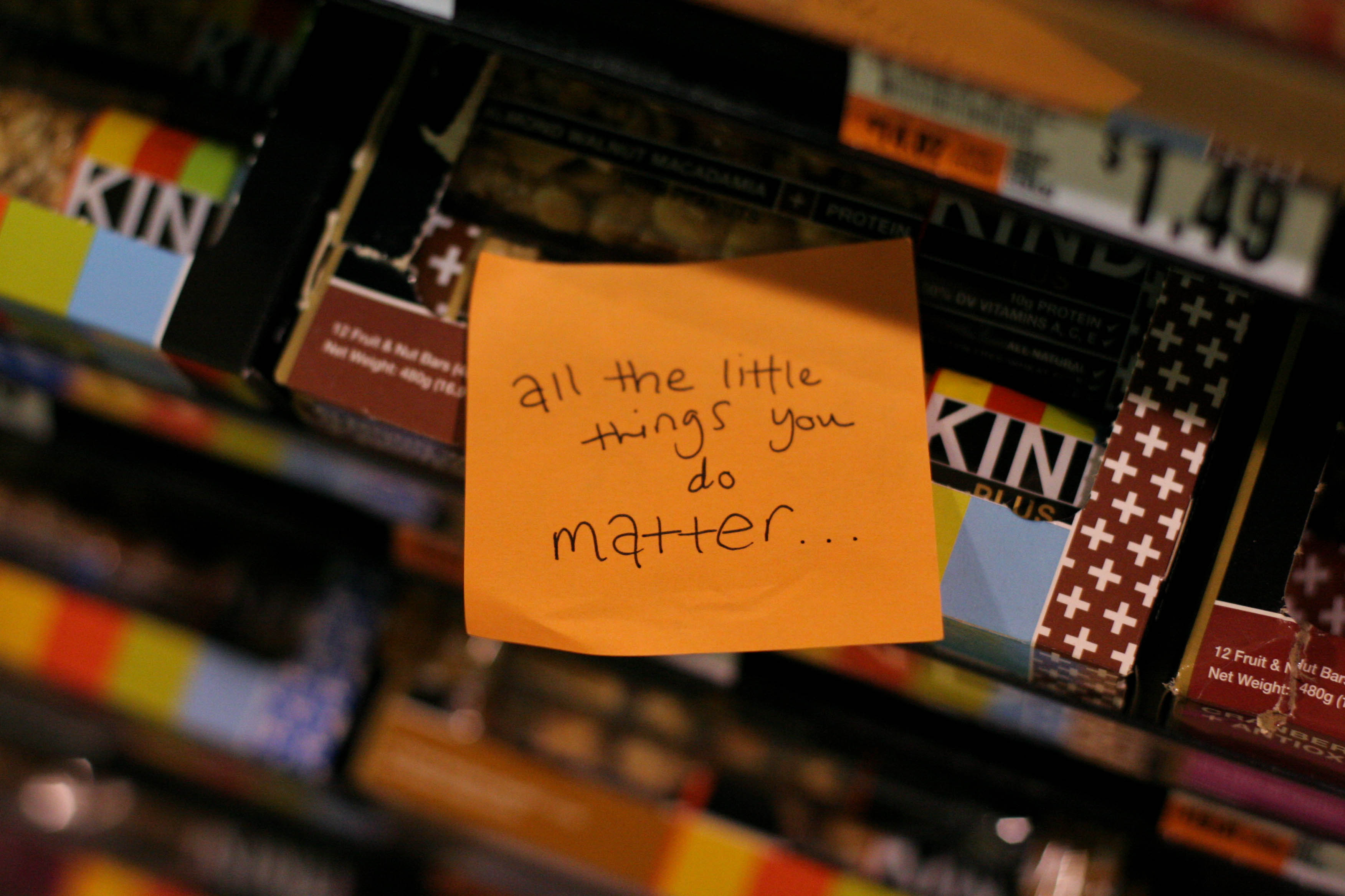 So Lyra and I went into our local grocery store and post-it/kindness bombed it…with all the things I could imagine that mothers, friends, stock boys/girls, the last minute Melvins may need to hear…or know. We thought you may like to join us.