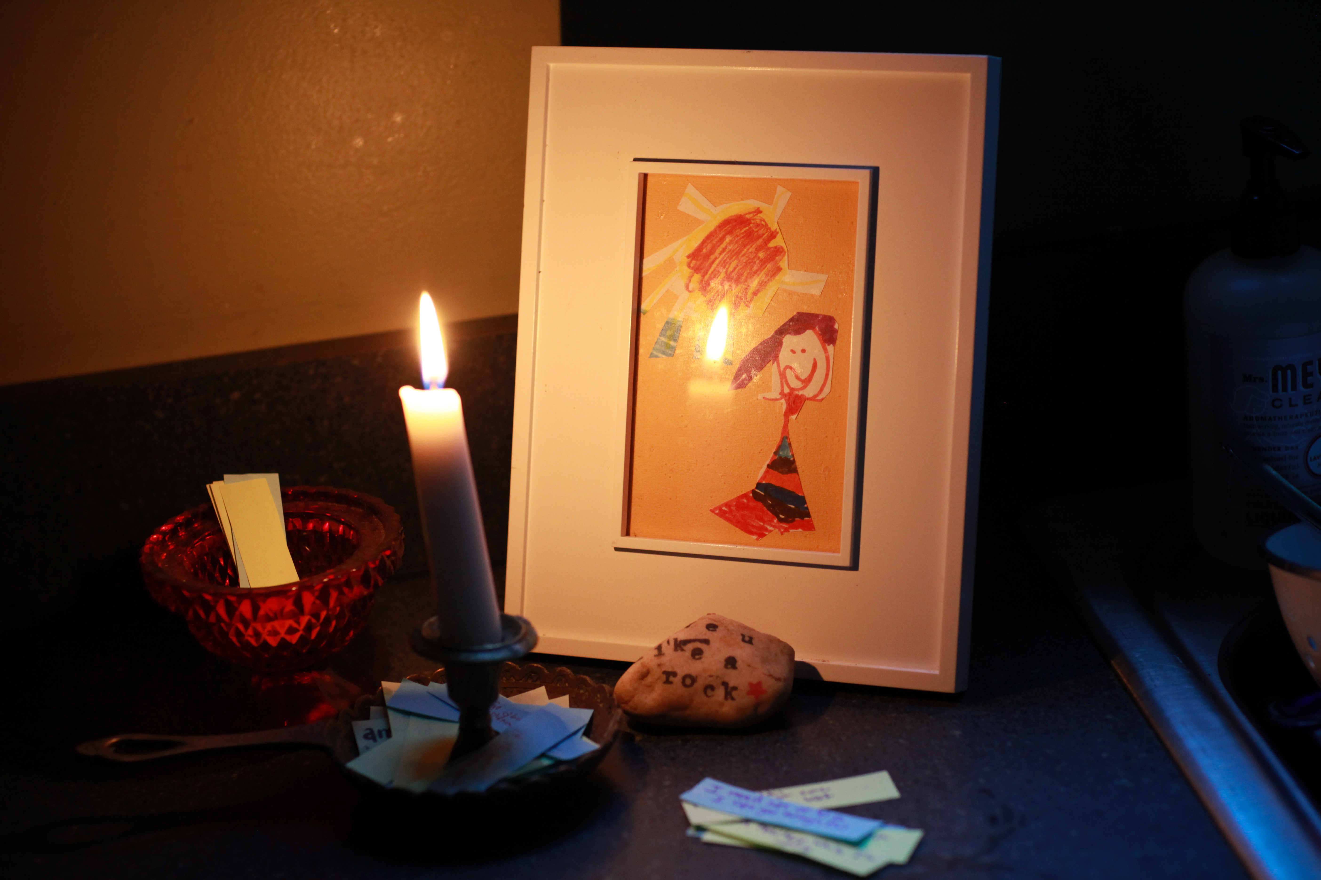 So we made a fire and gathered a circle with candles and decorated with the left over defunct Pinterest art that Josiah made into a nest. It was perfect. We called the kids in one by one, and whispered by name, “We are glad you are here ______.”