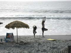 …. Me and Gabi doing yoga on the beach. I love my goddaughter and her mom and dad.