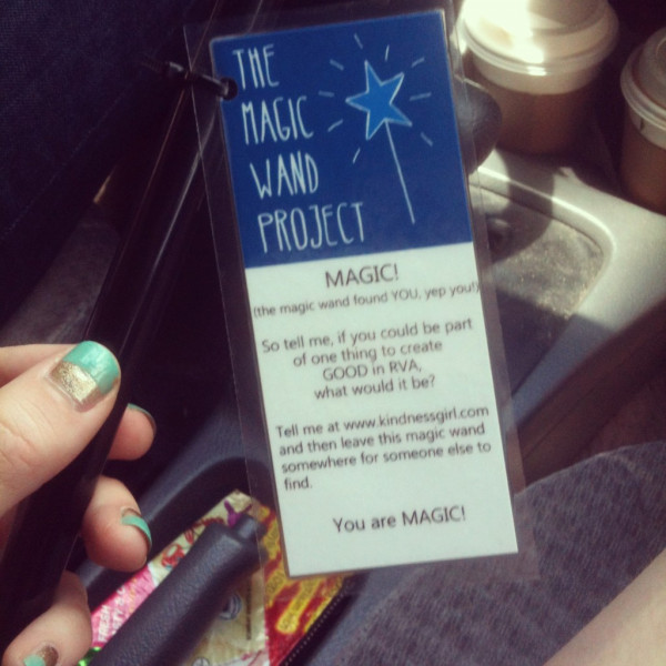 We then asked people to tell us here at KindnessGirl and then leave the wand somewhere else for the next person to find.